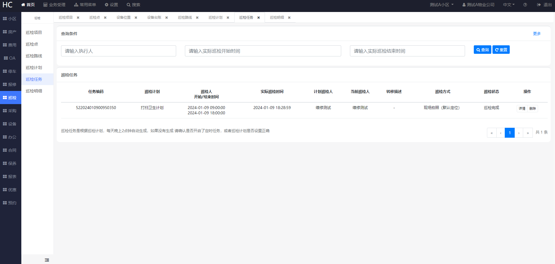 此时在巡检明细记录和巡检任务详情中可以看到巡检记录