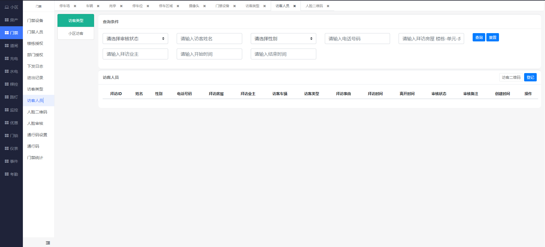这种需要物业人员登陆物联网系统,打开访客人员页面点击登记,填写相关信息后即可;