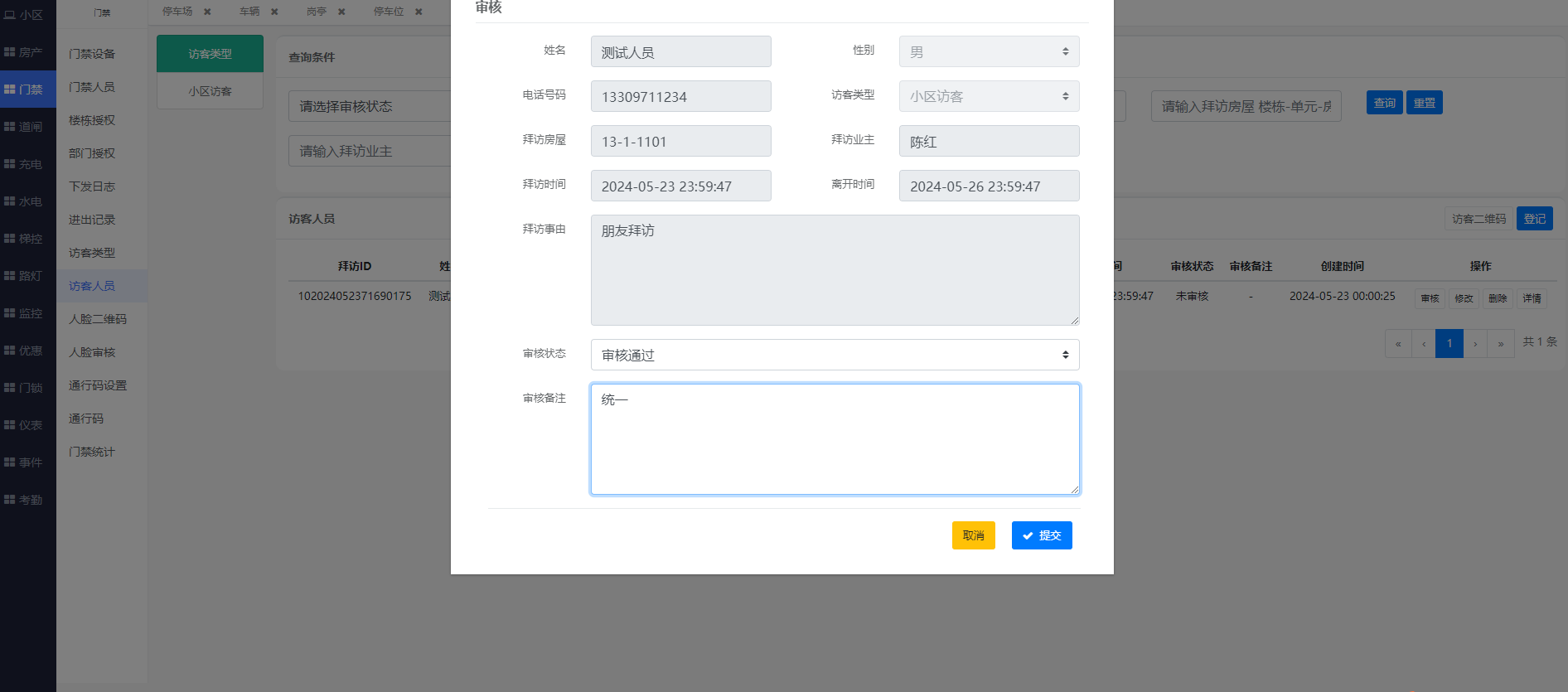 当设置访客中选择了访客审核,那么需要物业人员审核,可以通过pc 端审核或者手机端审核;